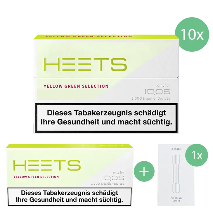 IQOS HEETS Yellow Green Stange (10er Packung) + IQOS Cleaning Sticks
